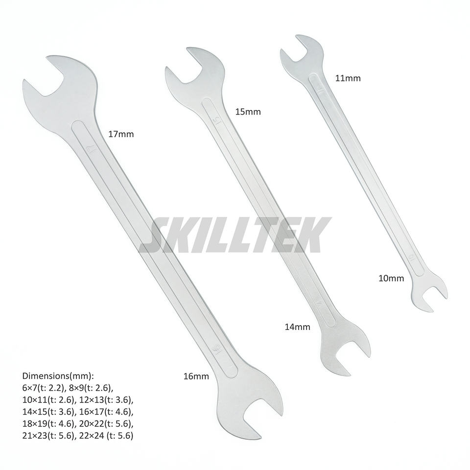 ชุดประแจปากตายแบบเตี้ย SKILLTEK OEM ผลิตจากไต้หวัน ผลิตจากเหล็กโครเมียมวาเนเดียม แบบตีขึ้นรูปด้วยวิธี Drop Forged สำหรับงาน DIY และอุตสาหกรรม ขนาดเมตริก 6 มม.-24 มม.