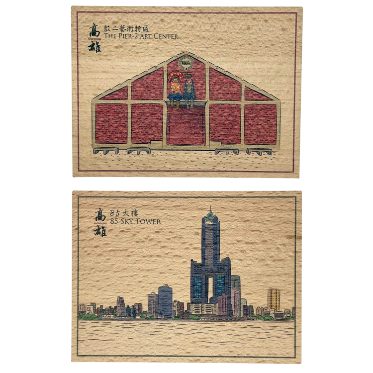 โปสการ์ดอวยพรจากไต้หวัน ทำจากไม้ ลายวิวอู่หยิง ศูนย์ศิลปะแห่งชาติเมืองเกาลิวซิง พระเจดีย์มังกรและเสือ สำหรับตกแต่งบ้าน