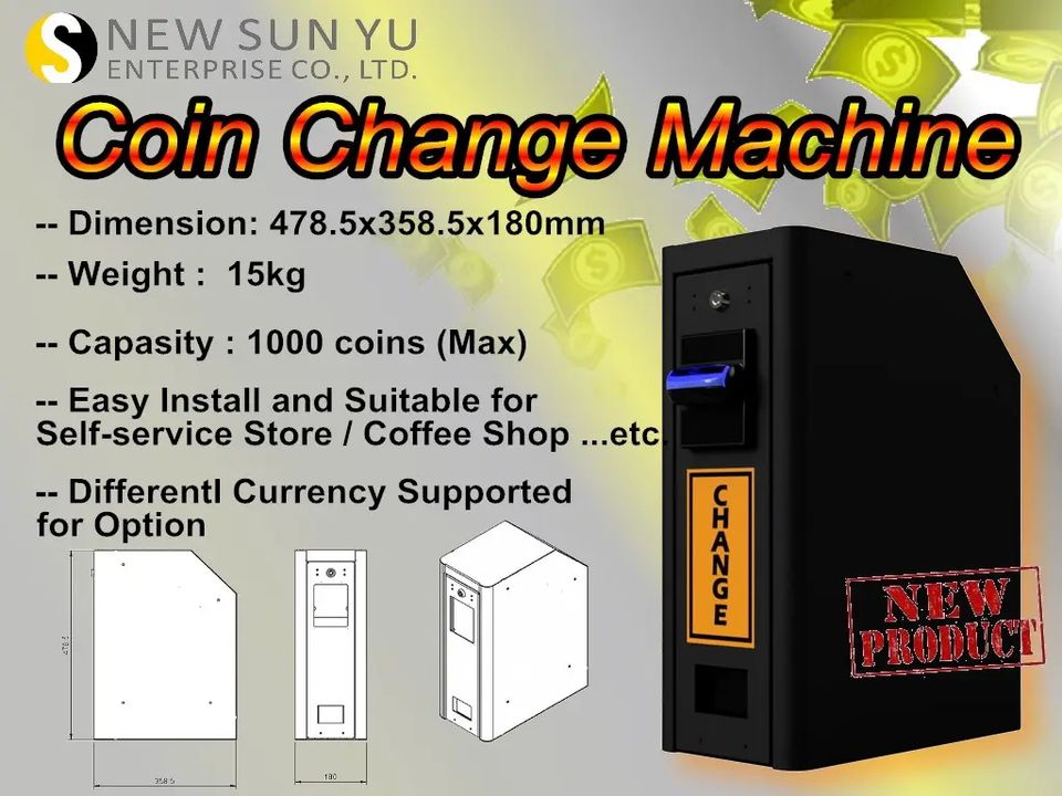 เครื่องแลกเหรียญสแตนเลสผลิตในไต้หวัน ติดผนังได้ ใช้ได้กับปลั๊กทั่วไป 110/220V