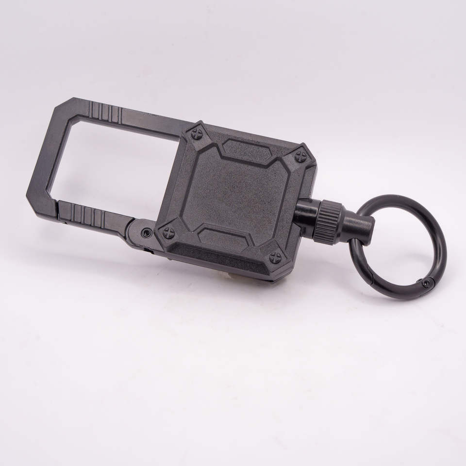 พวงกุญแจโลหะสลักโลโก้ด้วยเลเซอร์คุณภาพจากไต้หวันพวงกุญแจสำหรับม้วนคาราบิเนอร์ทรงสี่เหลี่ยมพับเก็บได้กลางแจ้ง