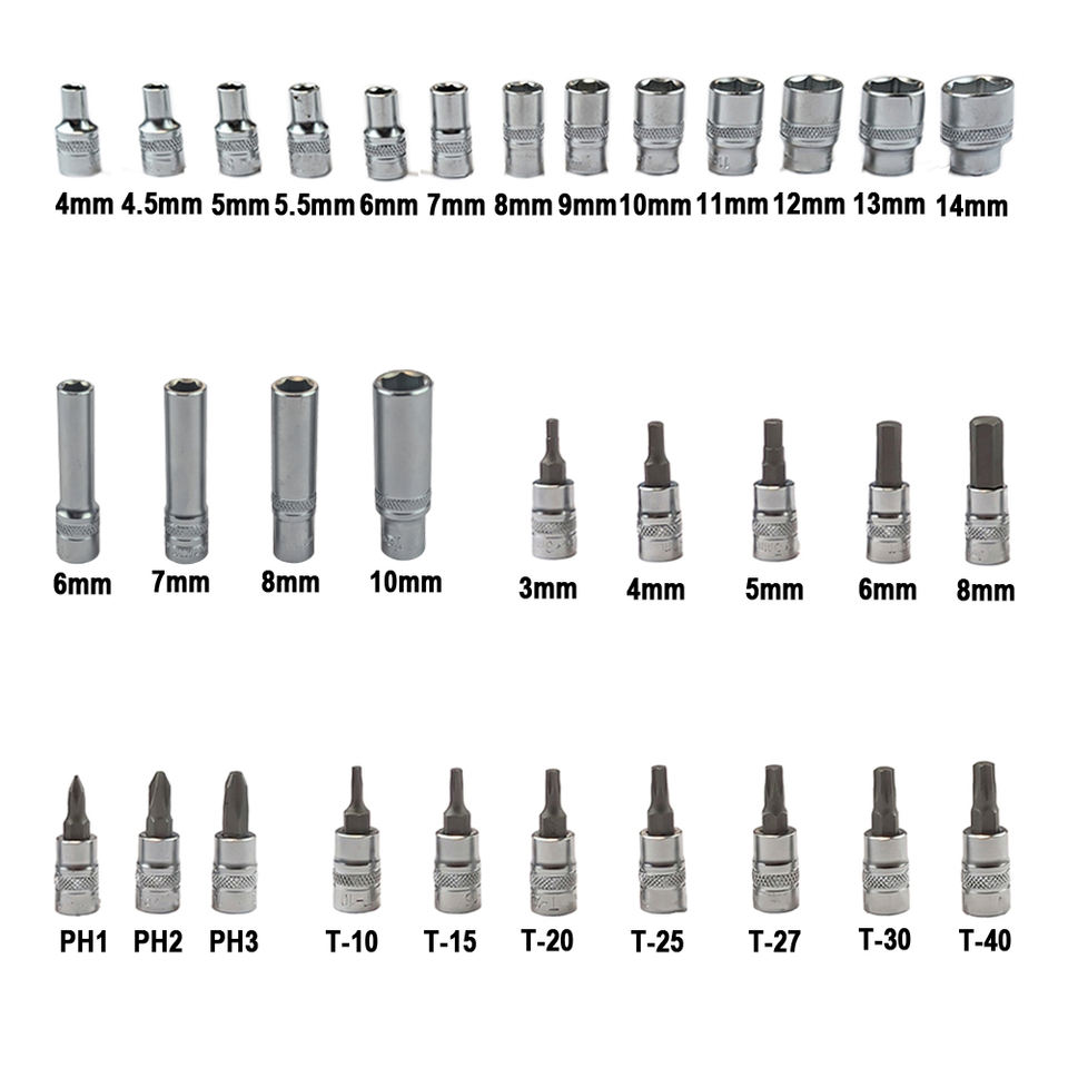 ซ็อกเก็ตบิต, แถบขยาย, ที่จับวงล้อ, ซ็อกเก็ต, ซ็อกเก็ตลึก, ข้อต่อสากล, เลื่อน T-Handle, ที่จับสปินเนอร์เครื่องมือ