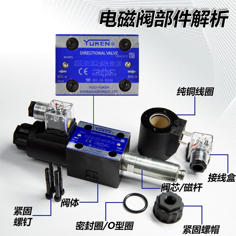 วาล์วควบคุมทิศทางไฮดรอลิกแบบโซลินอยด์ ยี่ห้อไต้หวัน ยูเคน รุ่น DSG-01 วาล์วพวงมาลัยไฮดรอลิก 01-3C2/3C3/3C4/3C6 วาล์วไฮดรอลิกคุณภาพสูง