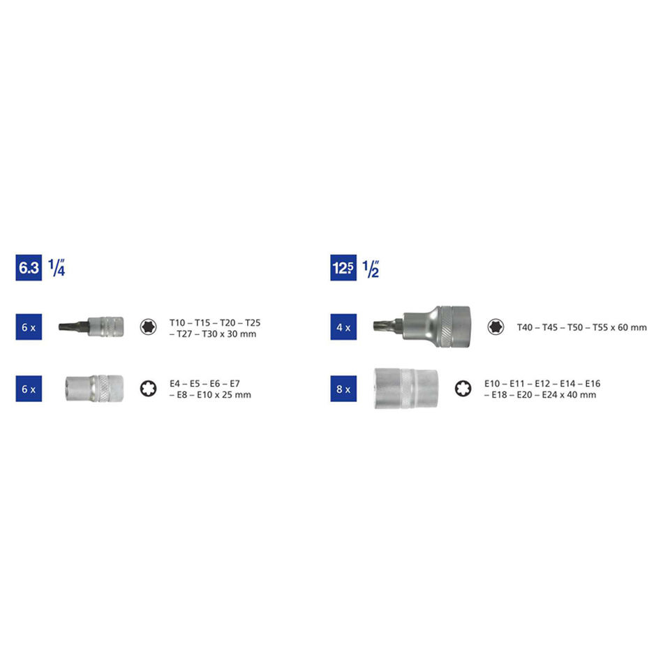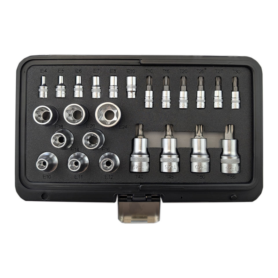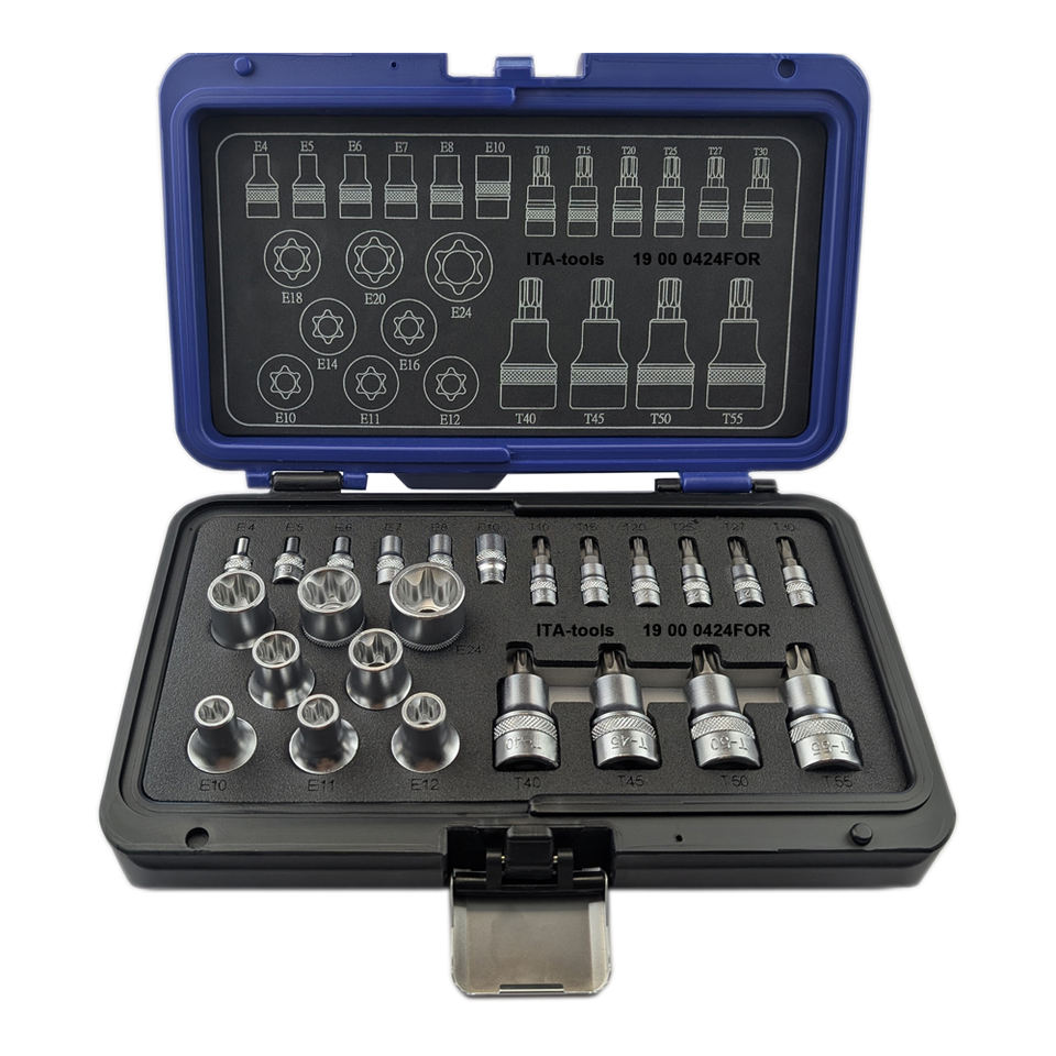 ผู้ผลิตจากไต้หวัน OEM ODM ชุดซ็อกเก็ตบิชท์ Torx 24ชิ้น1/2 "Dr. 1/4 "dr.e เครื่องมือซ็อกเก็ตเครื่องมือช่างเพิ่มเติม