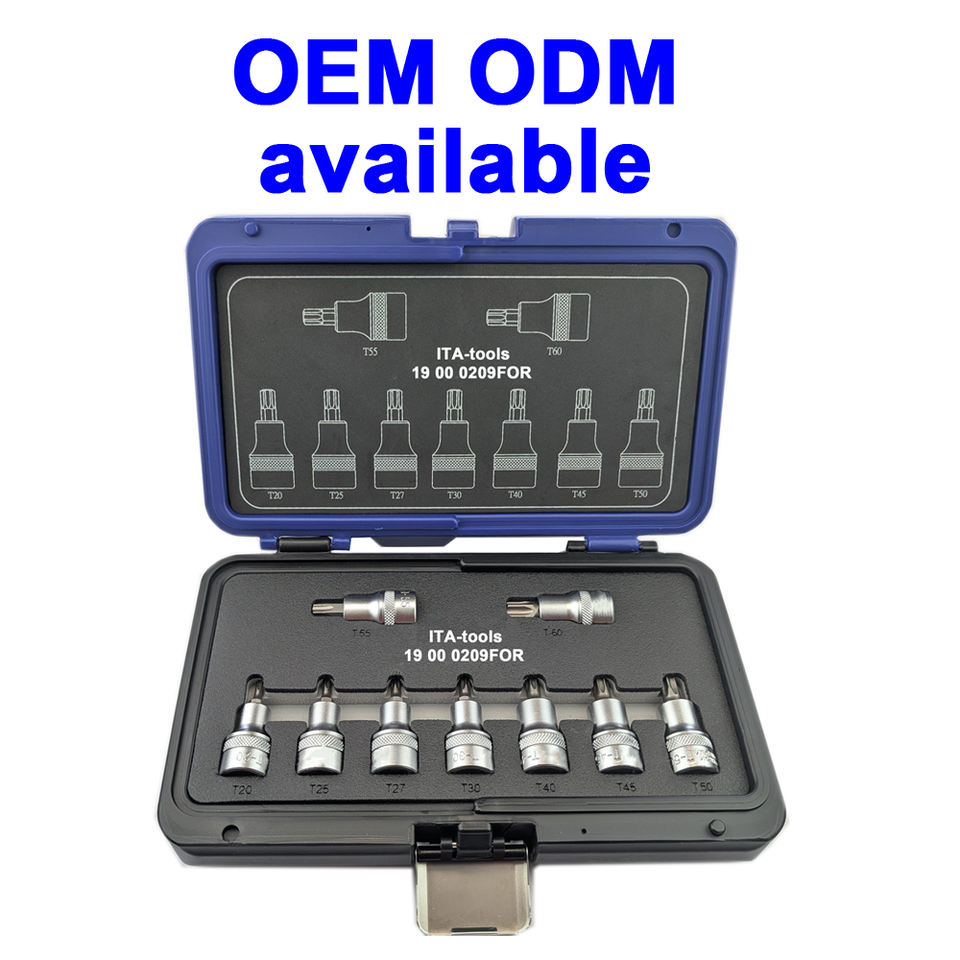 ชุดเครื่องมือช่าง 9 ชิ้น ผลิตในไต้หวัน วัสดุเหล็กโครมวานาเดียม ขนาด 1/2 นิ้ว หัวทอร์กซ์ แบบ OEM ODM พร้อมกล่องโลหะ มีเครื่องมือช่างอื่นๆ