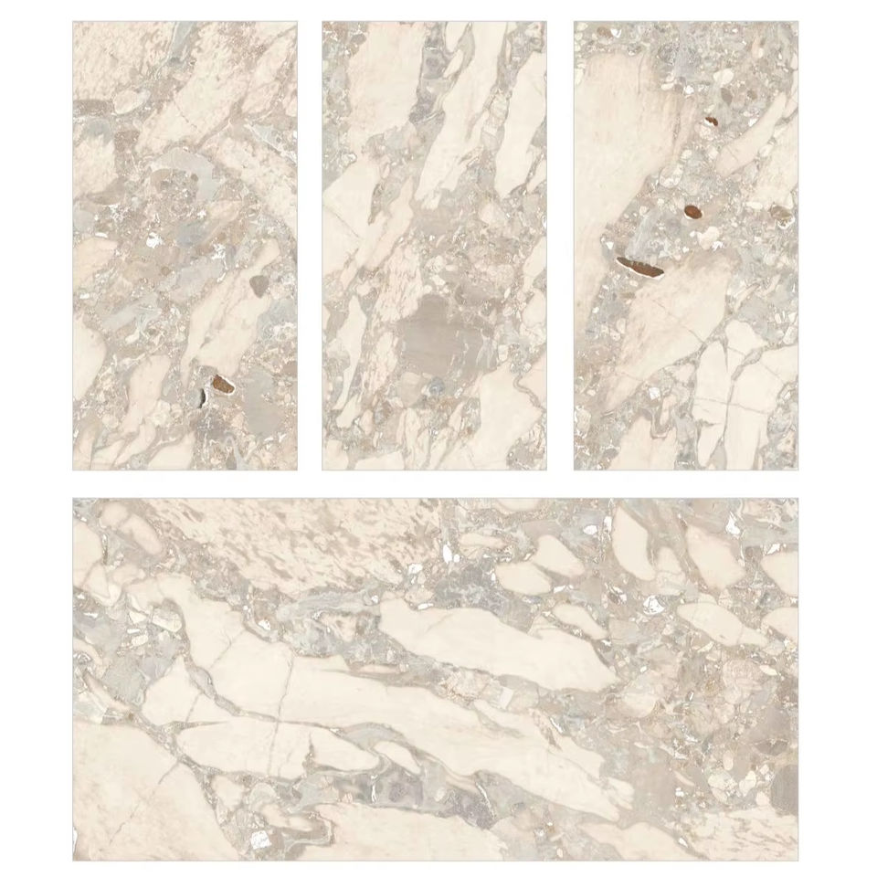 กระเบื้องปูพื้นพอร์ซเลนเคลือบเงา Taj Mahal Crema ขนาด 600x1200 มม. ดีไซน์โมเดิร์นเรโทร ลายเทอร์ราซโซ่ ซีรีส์แกะสลัก ทนกรด