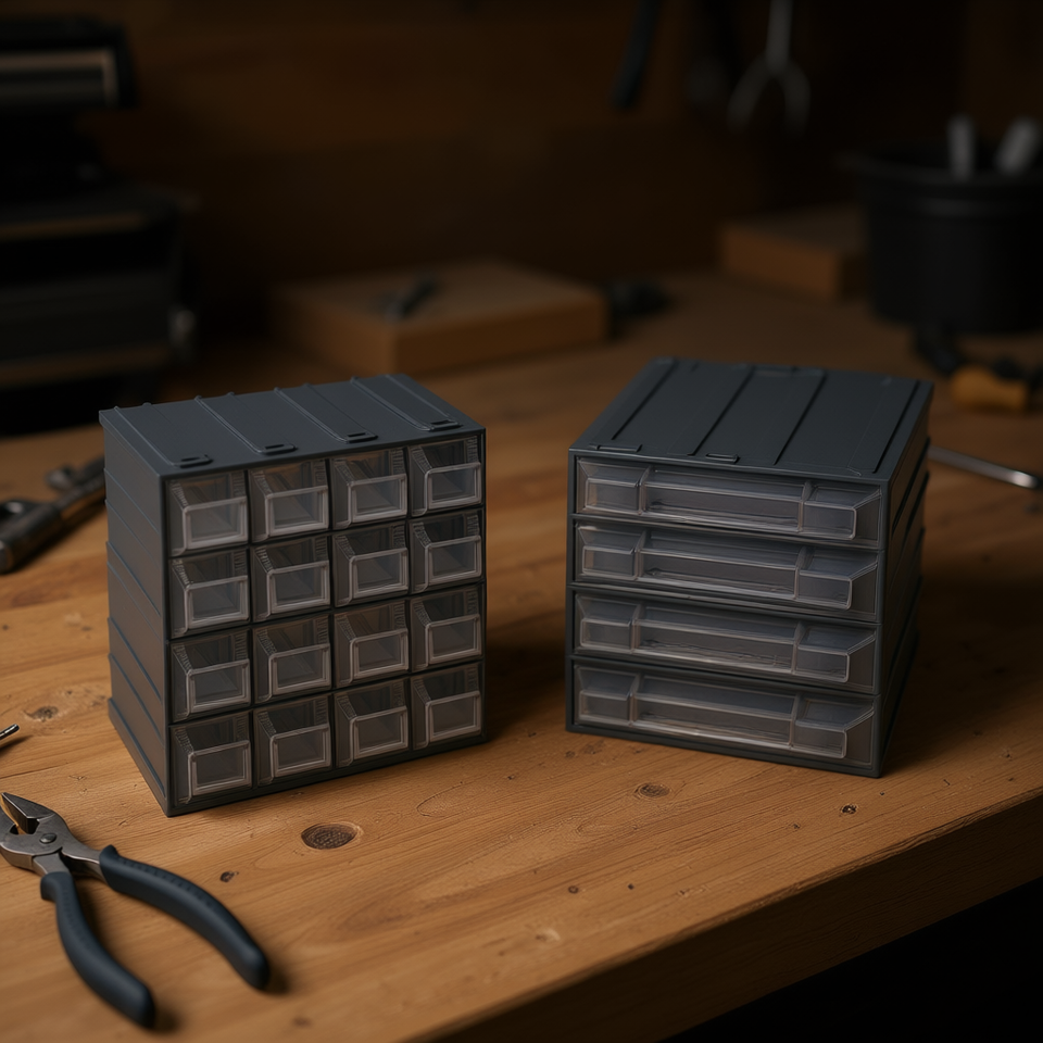 ตู้ลิ้นชัก 4 ลิ้นชัก สีเทาเข้ม โปร่งใส 20.8x13.2x20.8 ซม. ตู้เก็บเครื่องมือ