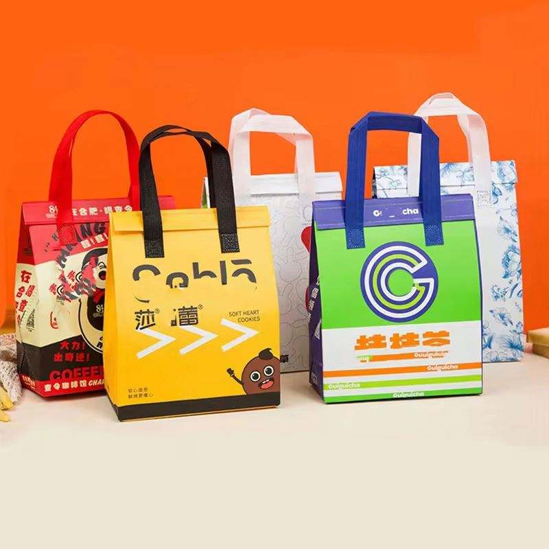 กระเป๋าเก็บความเย็นแบบพกพาสำหรับงานจัดเลี้ยงนอกสถานที่ ทำจากผ้าไม่ถักทอ ฉนวนกันความร้อน หลายขนาด หนาพิเศษ เคลือบกันน้ำ พร้อมกาว
