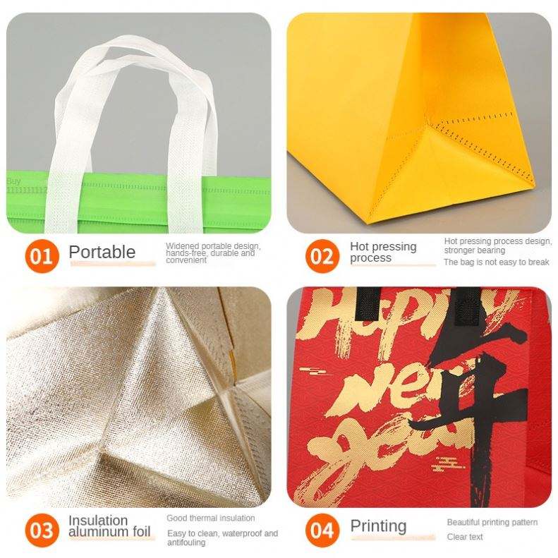 กระเป๋าเก็บความเย็นแบบพกพาสำหรับงานจัดเลี้ยงนอกสถานที่ วัสดุไม่ถักทอ หลายขนาด หนาพิเศษ เคลือบกันน้ำ ลายตัวอักษร