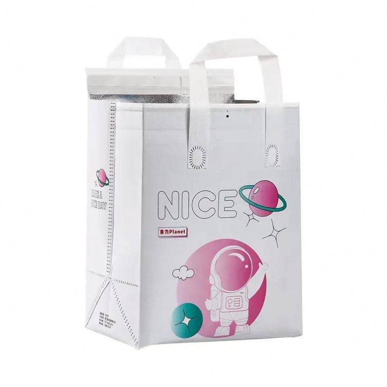 ถุงเก็บความร้อนแบบนำกลับบ้าน ทำจากวัสดุรีไซเคิลและย่อยสลายได้ ใช้ถุงบรรจุภัณฑ์แบบไม่ถักทอ ถุงหิ้ว ฟิล์มอลูมิเนียมฟอยล์ ปิดผนึกด้วยความร้อน