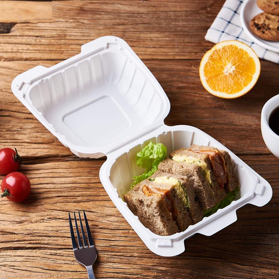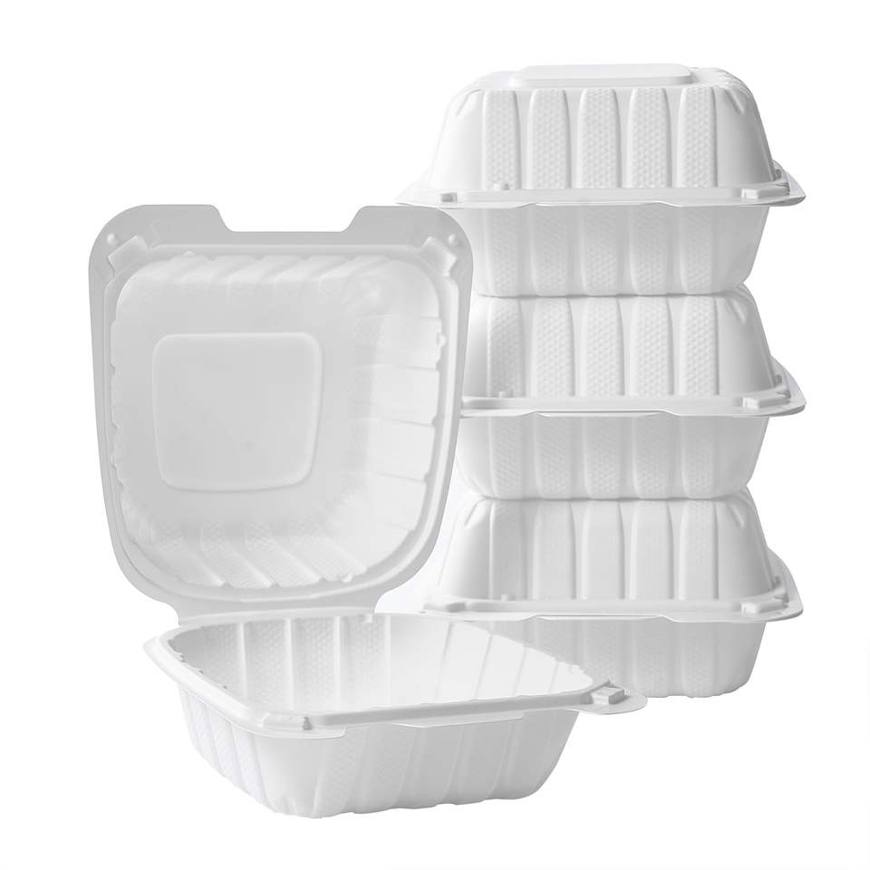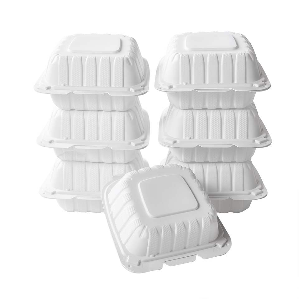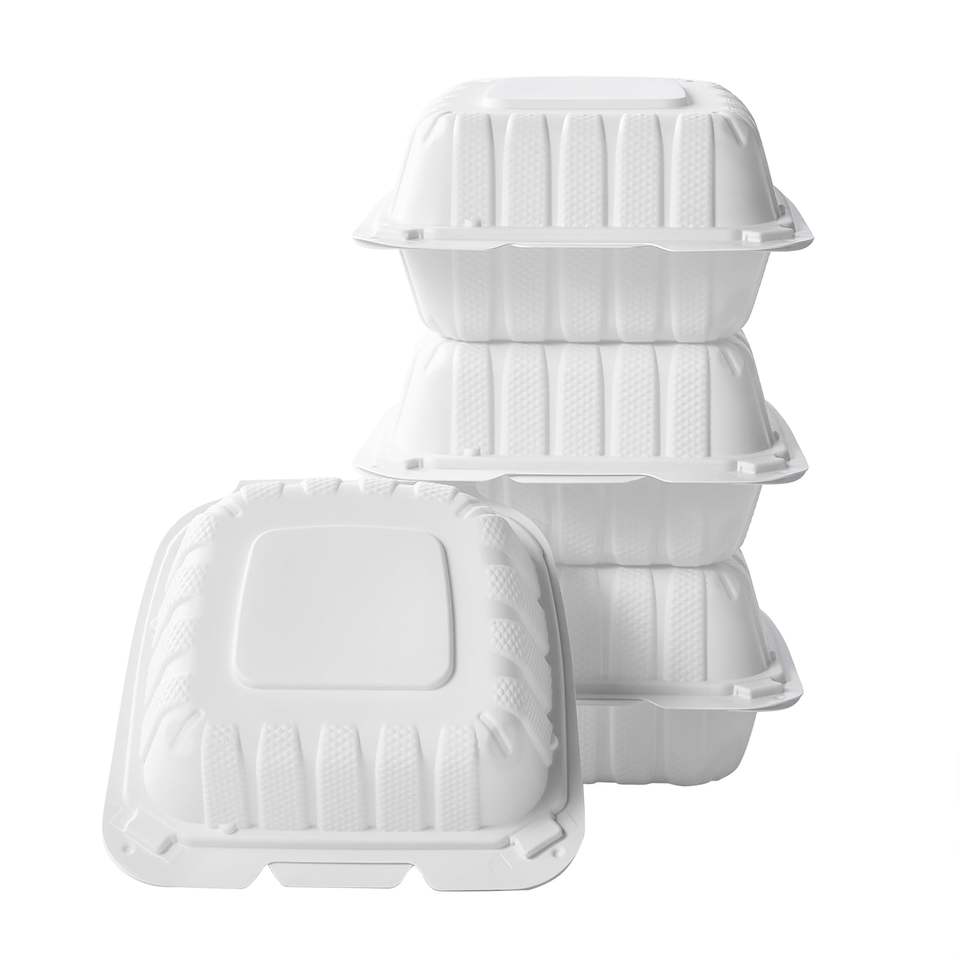 กล่องใส่อาหารแบบใช้แล้วทิ้ง ขนาด 6x6 นิ้ว ทนทาน กันน้ำ เป็นมิตรกับสิ่งแวดล้อม ย่อยสลายได้ ทำจากชานอ้อย สำหรับใส่ก๋วยเตี๋ยว รับผลิตตามแบบ OEM
