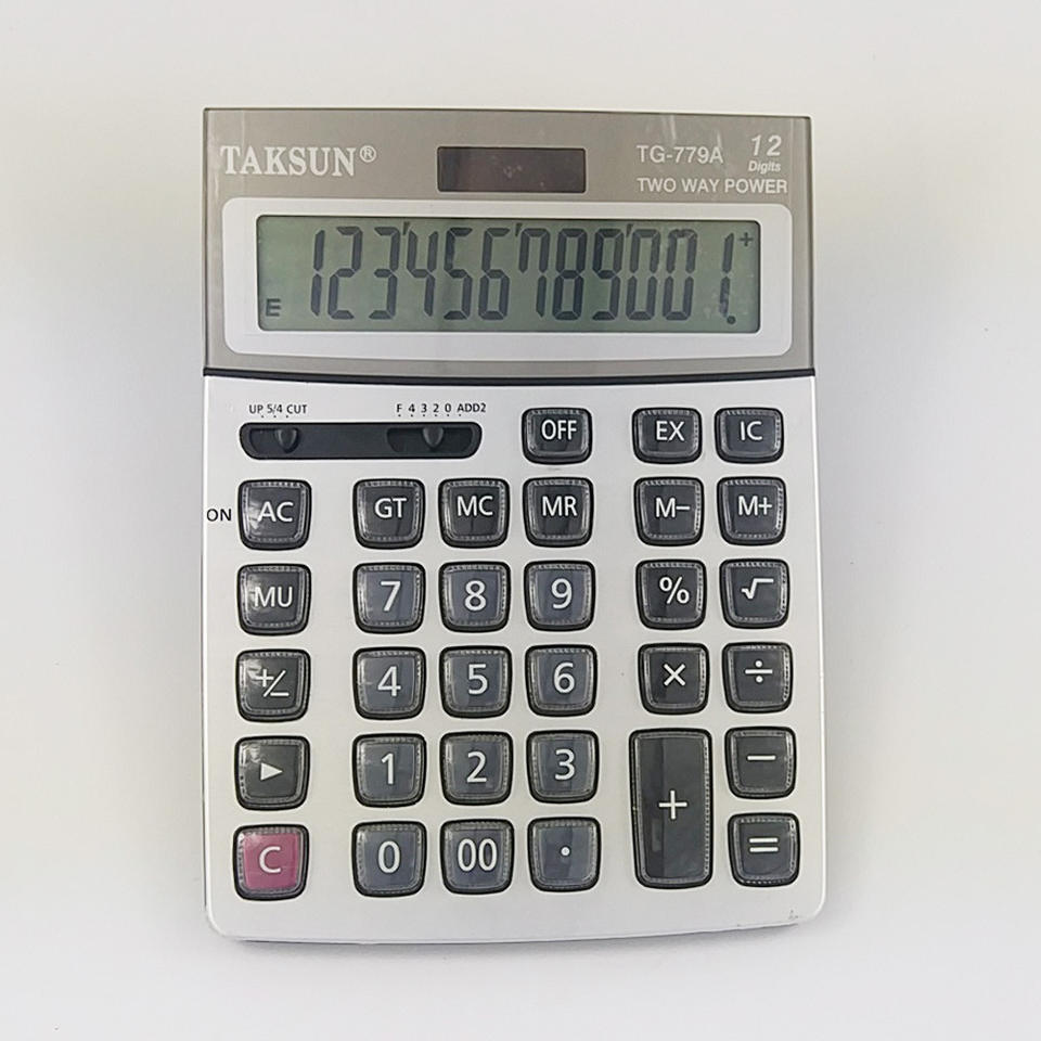แทคซัน TG-779A เครื่องคิดเลขพลังงานแสงอาทิตย์ 12 หลัก แหล่งจ่ายไฟคู่ ใช้ในสำนักงานทั่วไป สีเงิน
