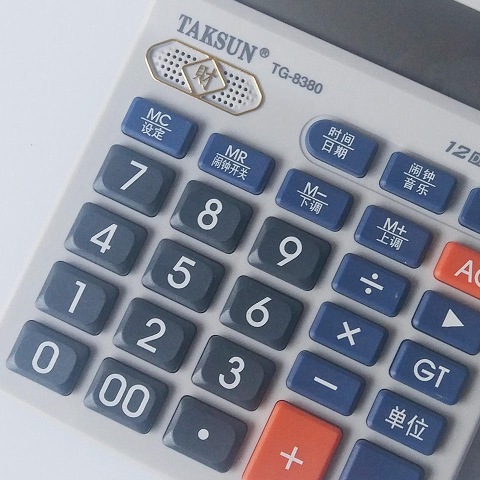 แทคซัน TG-8380 เครื่องคิดเลขตั้งโต๊ะ 12 หลัก ใช้พลังงานสองระบบ สำหรับใช้ในสำนักงาน พร้อมฟังก์ชั่นเสียง