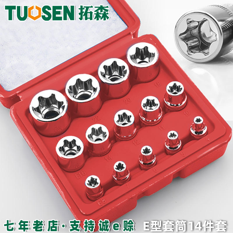 ชุดประแจซ็อกเก็ตทาคุโมริ 14 ชิ้น เมตริก ทอร์กซ์ ชุบโครเมียม หัวหกเหลี่ยม แบบ E