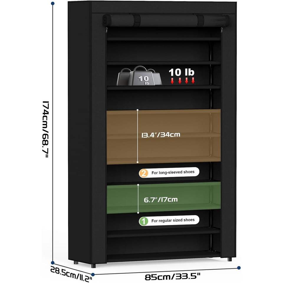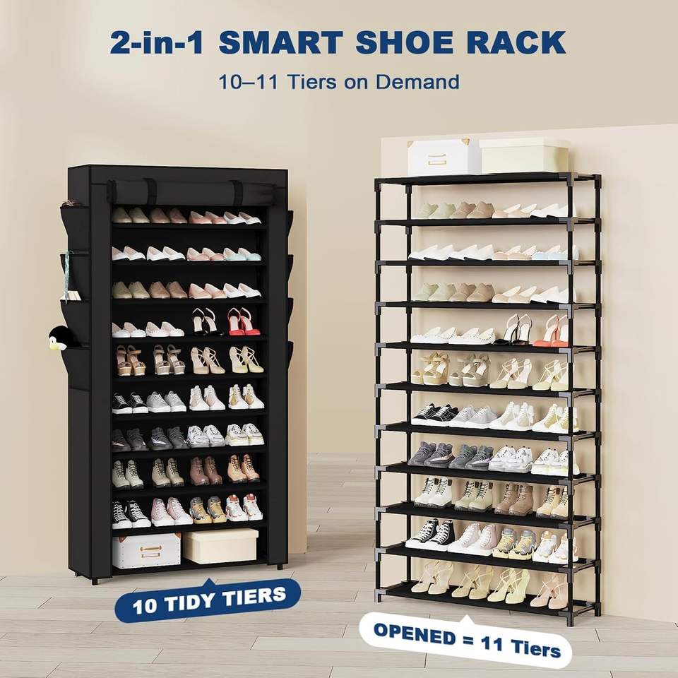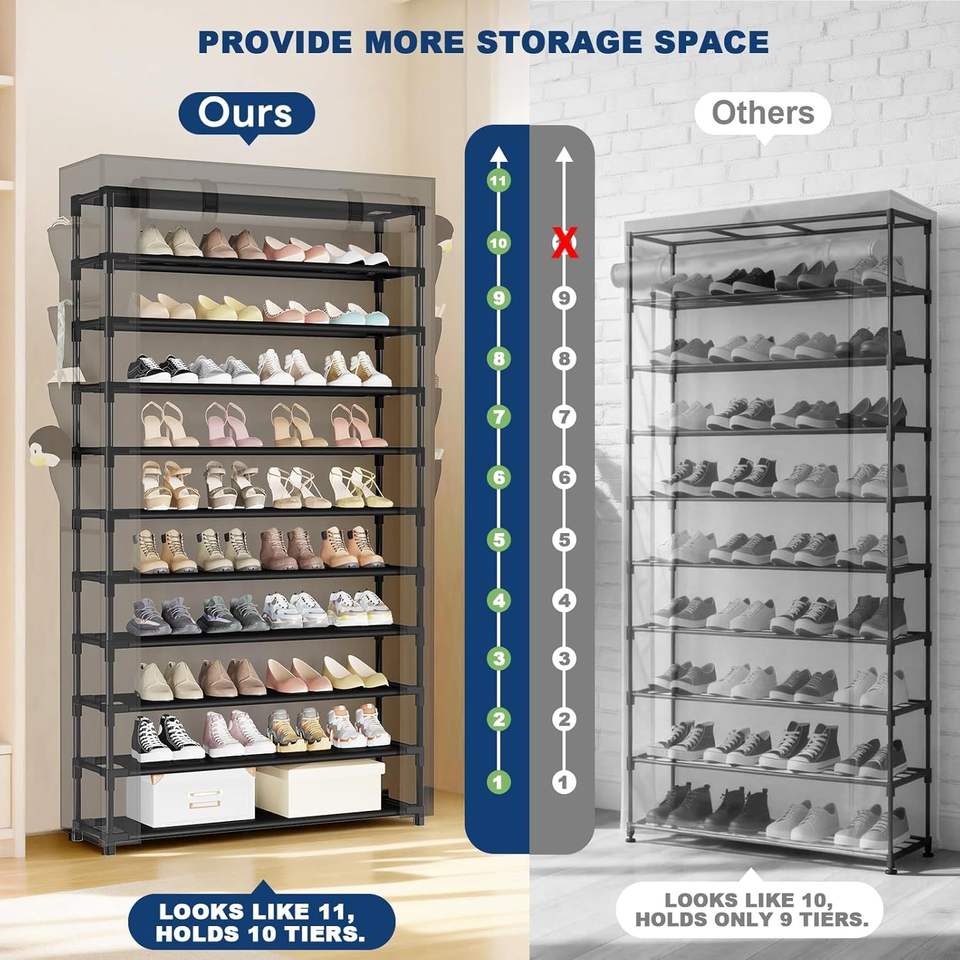 ชั้นวางรองเท้าสูง 10+1 ชั้น พร้อมฝาปิด สำหรับเก็บรองเท้าได้ 50-55 คู่