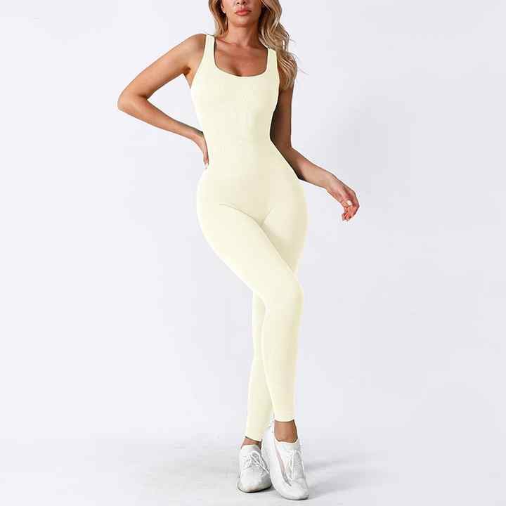 จั๊มสูทโยคะแบบชิ้นเดียวสำหรับสาวสูง กระชับสะโพก กางเกงขาบาน จั๊มสูทออกกำลังกายพร้อมโลโก้สั่งทำได้