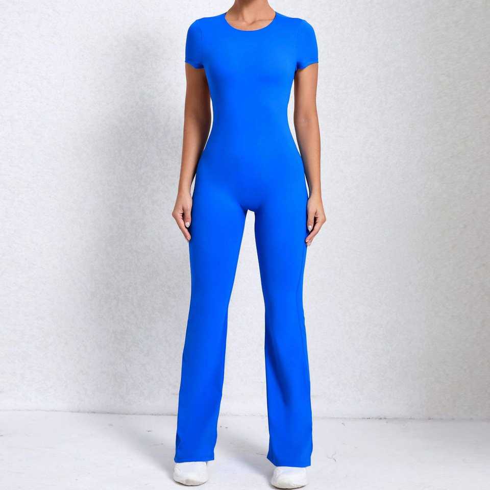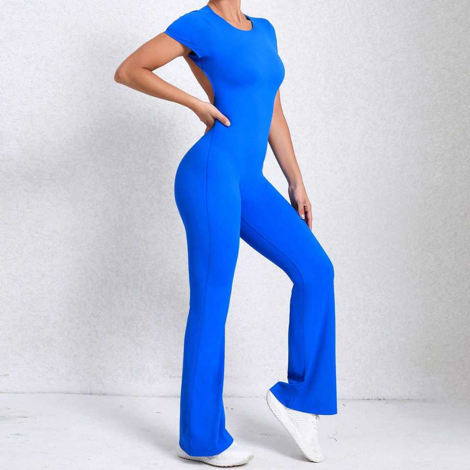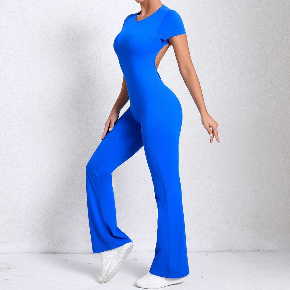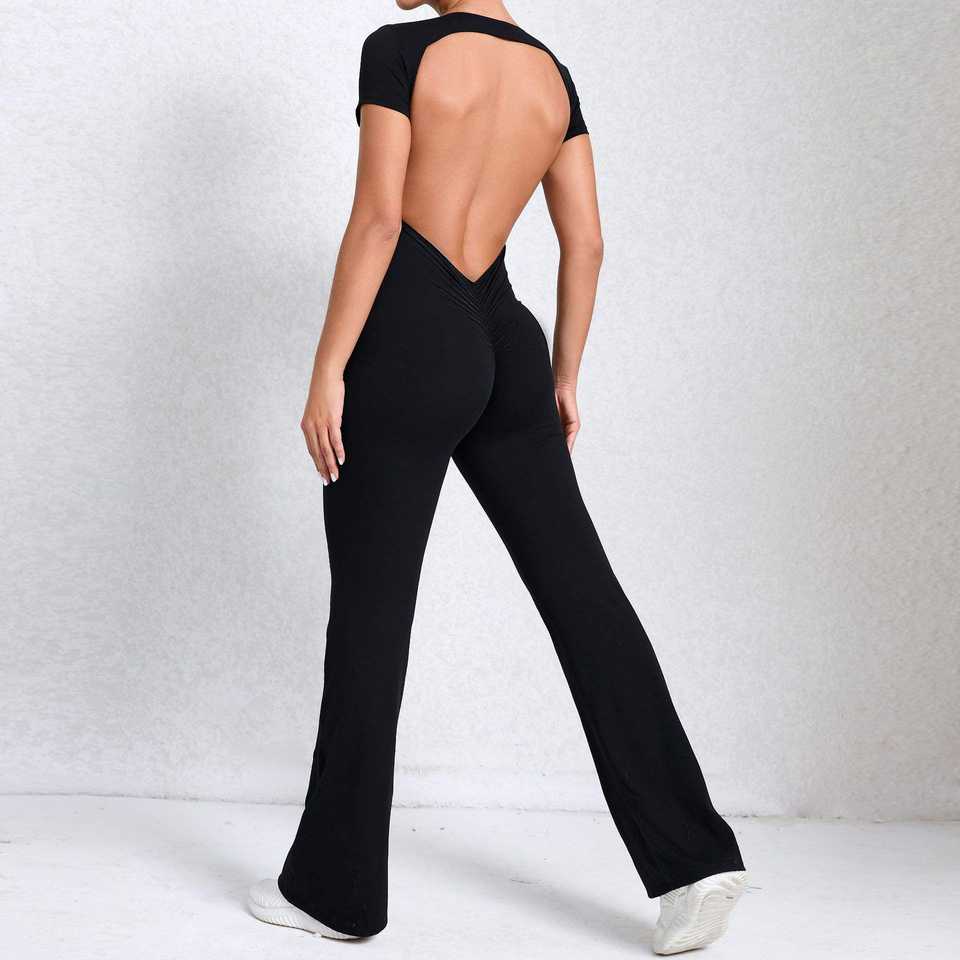 จั๊มสูทโยคะแบบชิ้นเดียวสำหรับสาวสูง กระชับสะโพก กางเกงขาบาน จั๊มสูทออกกำลังกายพร้อมโลโก้สั่งทำได้