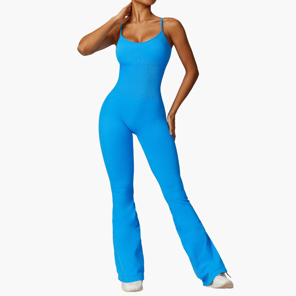 จั๊มสูทโยคะแบบชิ้นเดียวสำหรับสาวสูง กระชับสะโพก กางเกงขาบาน จั๊มสูทออกกำลังกายพร้อมโลโก้สั่งทำได้