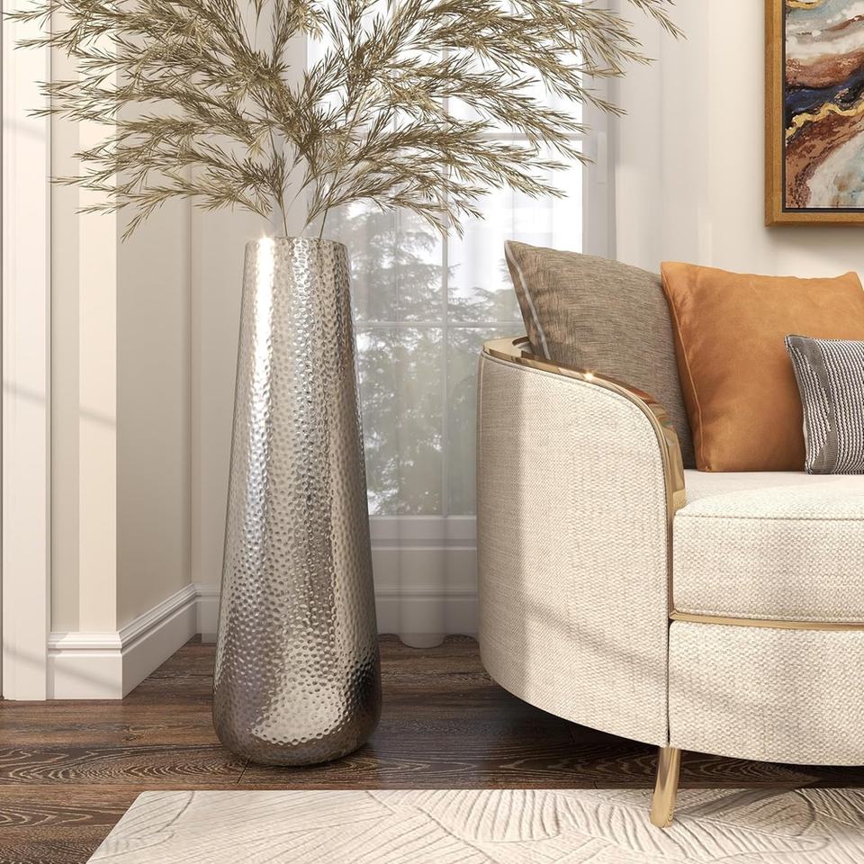 แจกันโลหะชุบนิกเกิลทรงสูงสำหรับตกแต่งบ้านและสำนักงาน