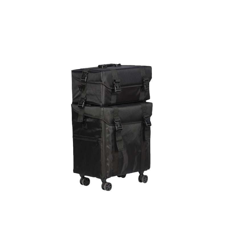 กระเป๋าเครื่องสำอางผ้าอ๊อกซ์ฟอร์ดทรงสูง รุ่น HZB-06 สีดำ ความจุขนาดใหญ่ ฝาปิดแบบล็อค สำหรับจัดเก็บของใช้ในบ้านและเดินทาง พร้อมช่องแบ่ง