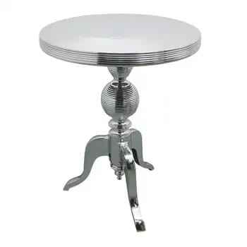 โต๊ะข้างทรงสูงขาตั้งอะลูมิเนียมสีเงิน โต๊ะกลมโลหะตกแต่งฐานสามขา หรูหรา ทันสมัย เหมาะสำหรับบ้าน งานแต่งงาน และงานปาร์ตี้
