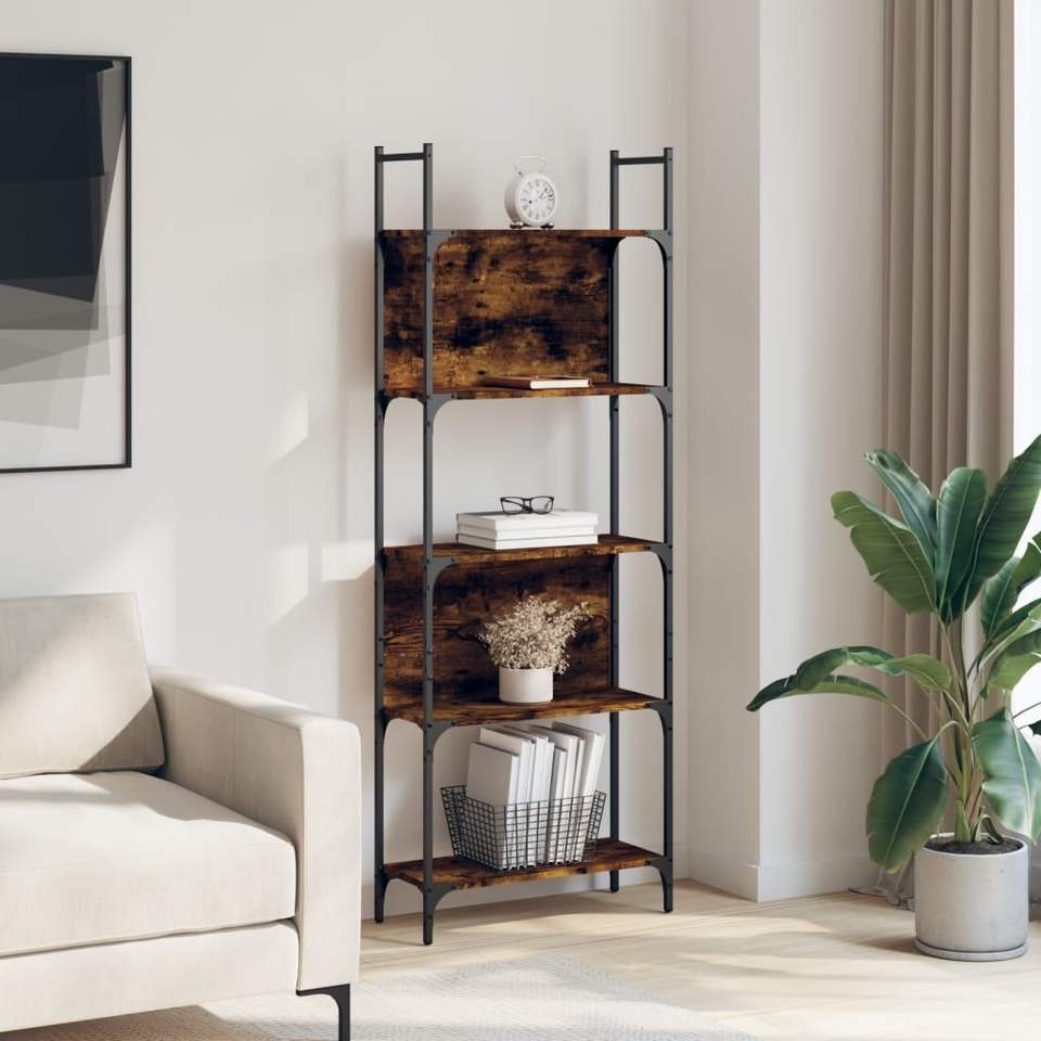 ชั้นวางหนังสือไม้โอ๊ครมควันทรงสูง รูปทรงสี่เหลี่ยมผืนผ้า