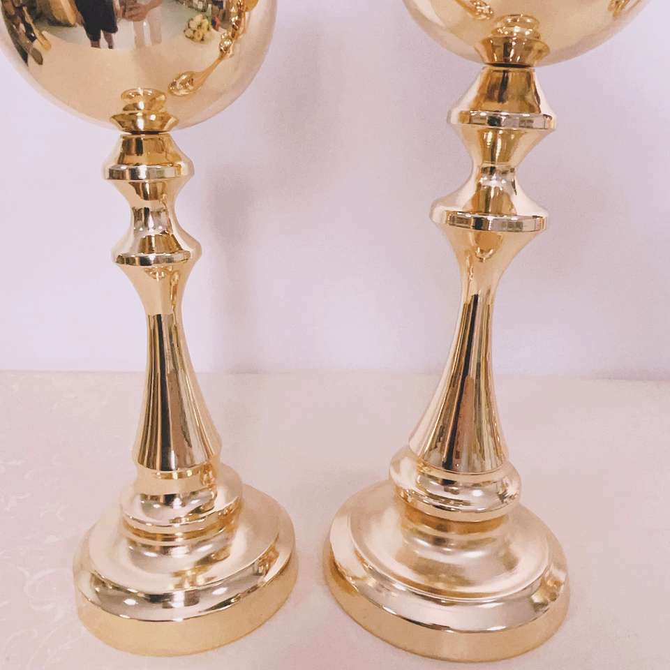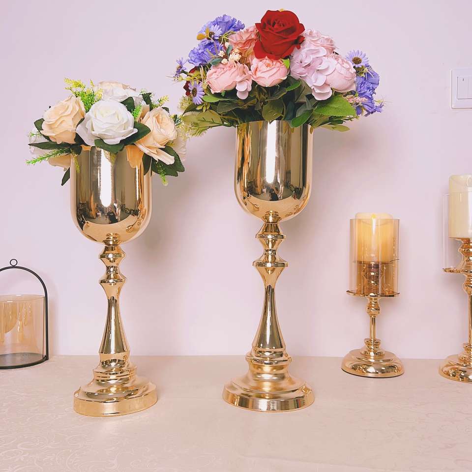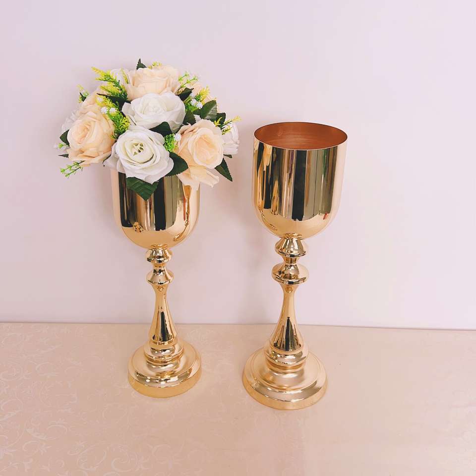 ของตกแต่งกลางโต๊ะทรงสูงทำจากโลหะ ดีไซน์ทรงถ้วยขัดเงา สำหรับงานแต่งงาน งานเลี้ยง งานอีเว้นท์ โรงแรม ตกแต่งภายใน