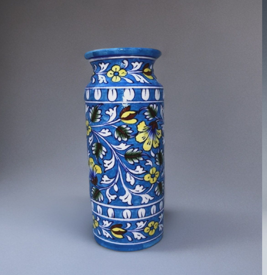 แจกันเซรามิกรูปทรงกระบอกสูงสีฟ้าอ่อนลายดอกไม้ งานฝีมือชิ้นเอกเฉพาะตัว จำหน่ายในราคาขายส่ง
