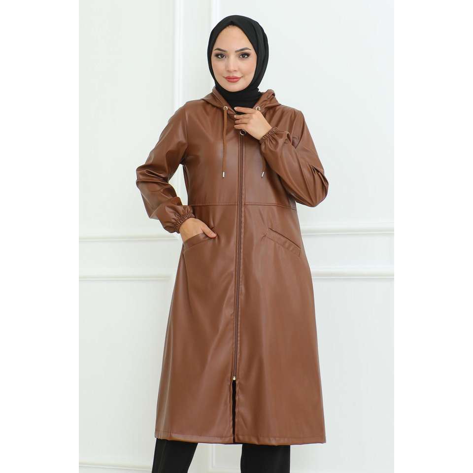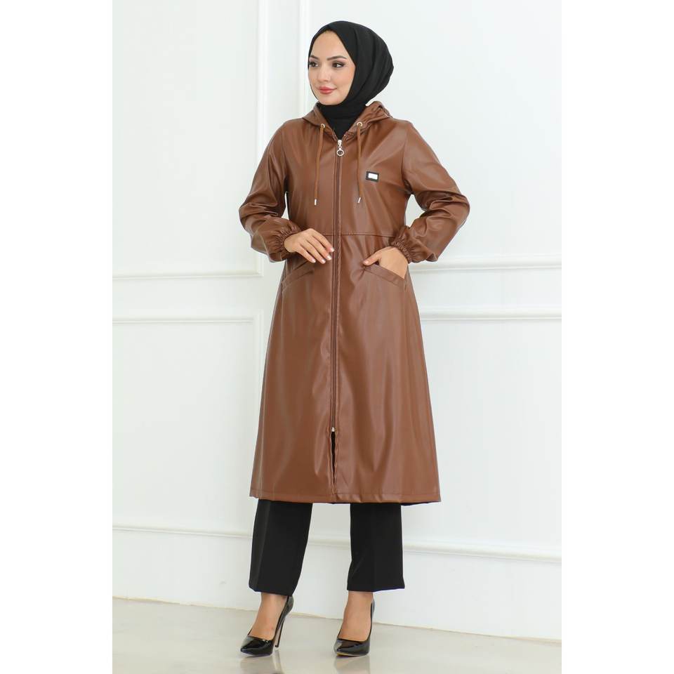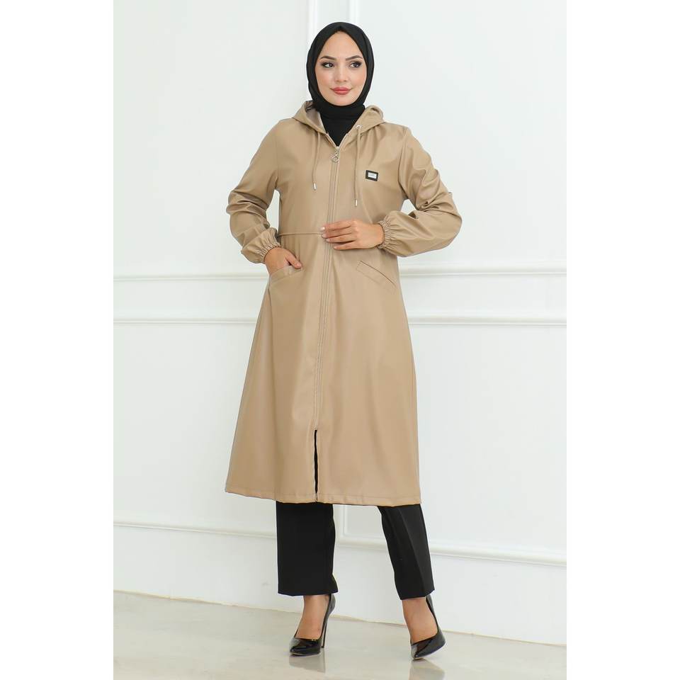 เสื้อโค้ทและเสื้อคลุมกันฝน Tan 19213 รุ่น Modest พร้อมรายละเอียดหนัง ดีไซน์หรูหรา