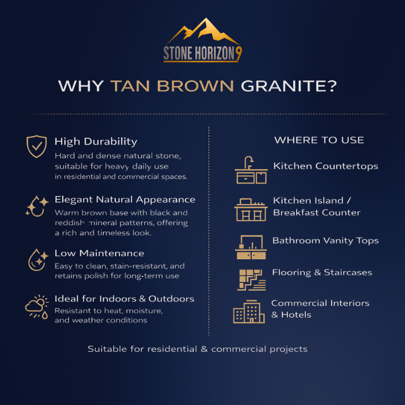 แผ่นหินแกรนิตสีน้ำตาลแทน | หินแกรนิตธรรมชาติขัดเงาสำหรับปูพื้นและเคาน์เตอร์ | คุณภาพส่งออก
