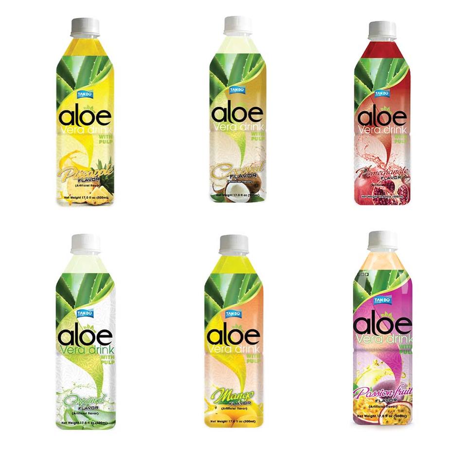 น้ำอโลเวร่า ตราทันโด ขนาด 500 มล. บรรจุขวด PET ไขมันต่ำ 100% น้ำผลไม้แท้ รสสับปะรด เสาวรส มะม่วง มะพร้าว ผสมอโลเวร่า ความหวาน 10 บริกซ์
