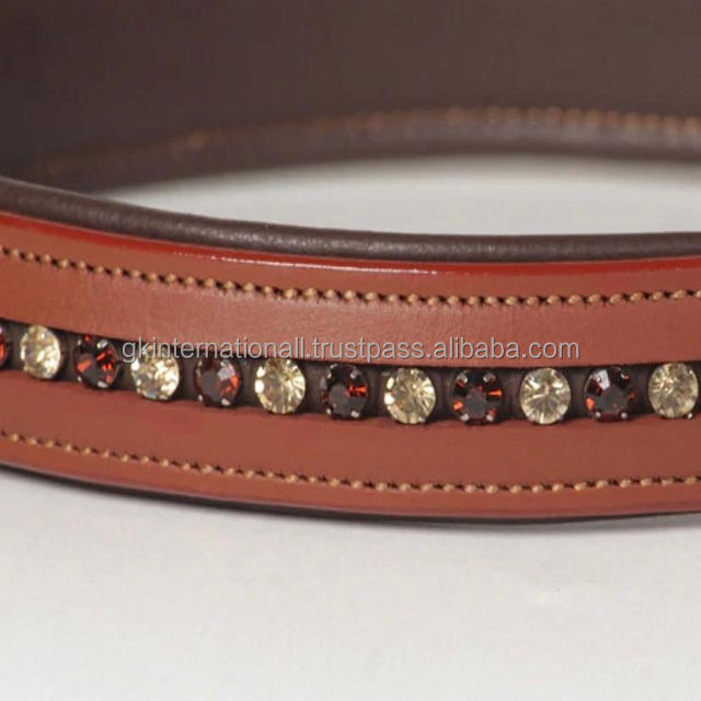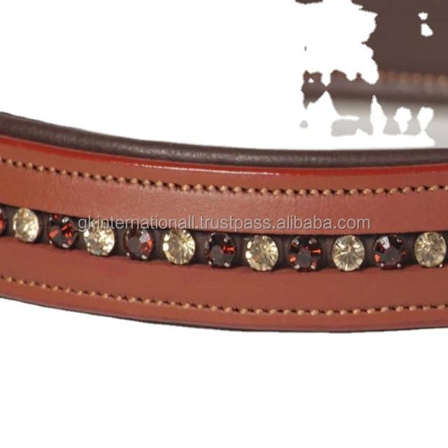 หนังแท้ประดับพลอยเทียมงานเย็บปกสุนัขทำด้วยมือคงทนเต็มตัวพร้อมลูกกลิ้งทองเหลืองและห่วงรูปตัว D แบบสั่งทำ