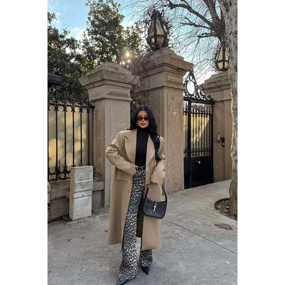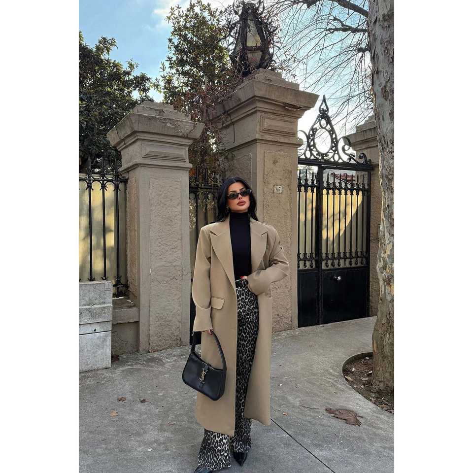 เสื้อโค้ทผู้หญิงสีแทนพร้อมดีเทลกระเป๋าติดกระดุมด้านหน้า