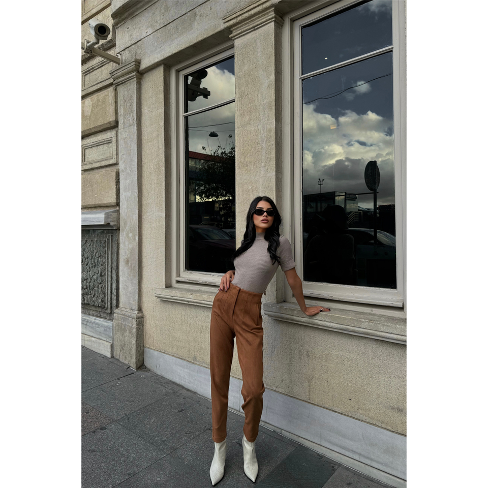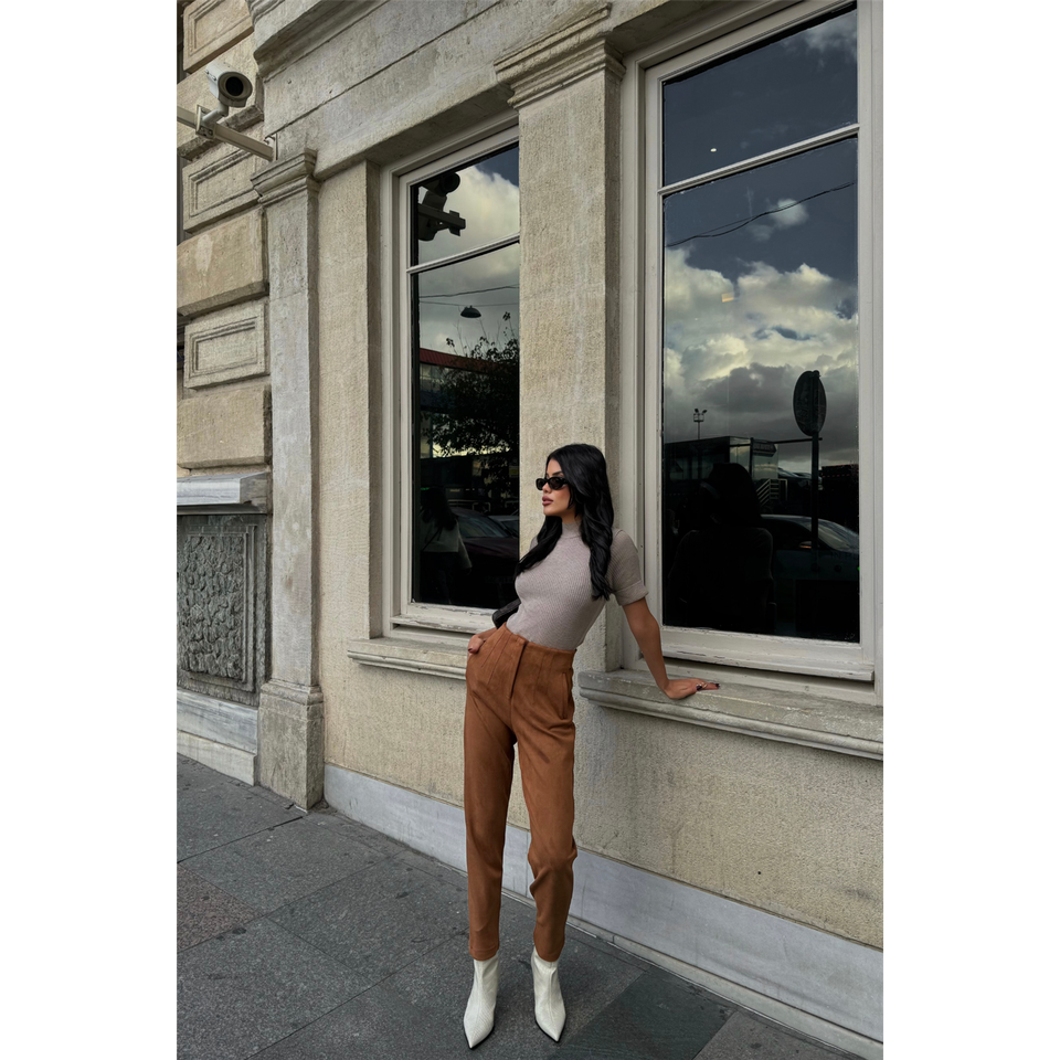 กางเกงขายาวทรงบานผ้าหนังกลับสำหรับผู้หญิง สีแทน เอวยางยืด ระบายอากาศได้ดี สวมใส่สบาย เหมาะสำหรับใส่ทำงาน ไซส์ XL ขั้นต่ำ 1 ชิ้น