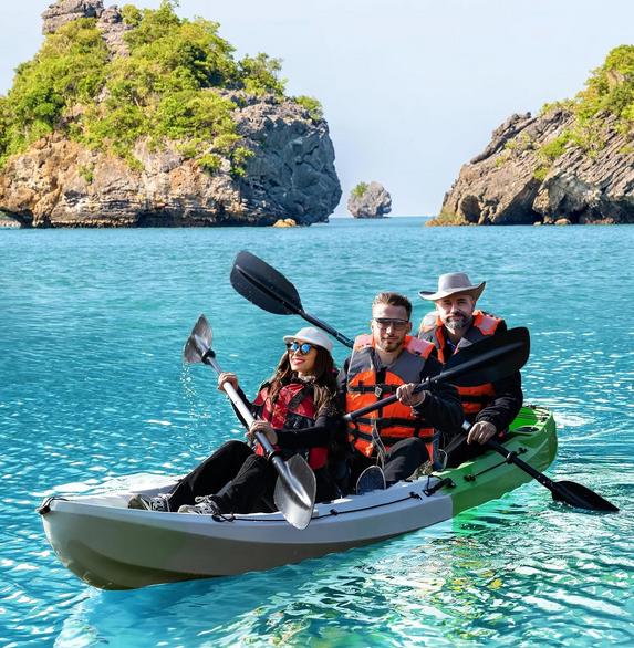 ตีคู่ตกปลา K A Y A K 12 4FT สำหรับผู้ใหญ่2 3คนพร้อมไม้พายที่นั่งสบายความจุ600LBS เปลือกแข็งมหาสมุทร K A Y A K