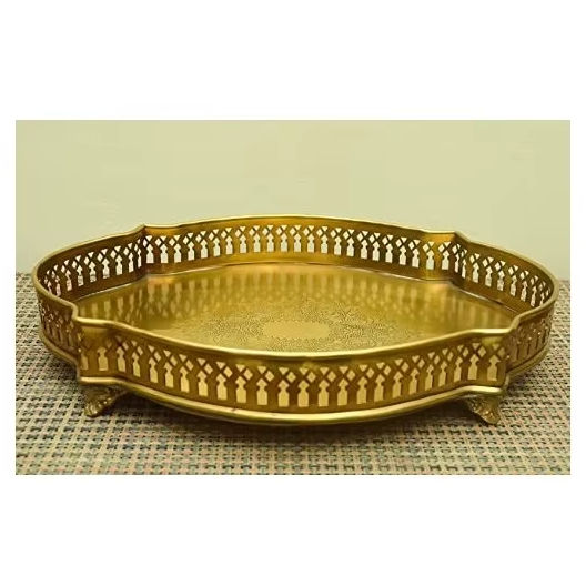 ถาดเสิร์ฟทองเหลืองเคลือบด้านลายส้มโอรูปวงรี ดีไซน์ฉลุลายตกแต่ง ภาชนะบนโต๊ะอาหารคุณภาพพรีเมียมสำหรับใช้ในบ้าน ราคาถูก จำหน่ายจำนวนมาก