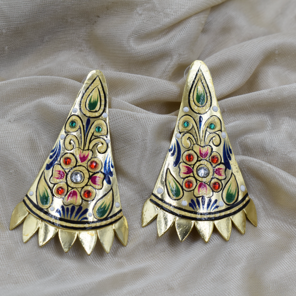 Tanjore painting hand-painted handmade gold plated brass stud earrings for ladies fashion jewelry earing party wear wholesale