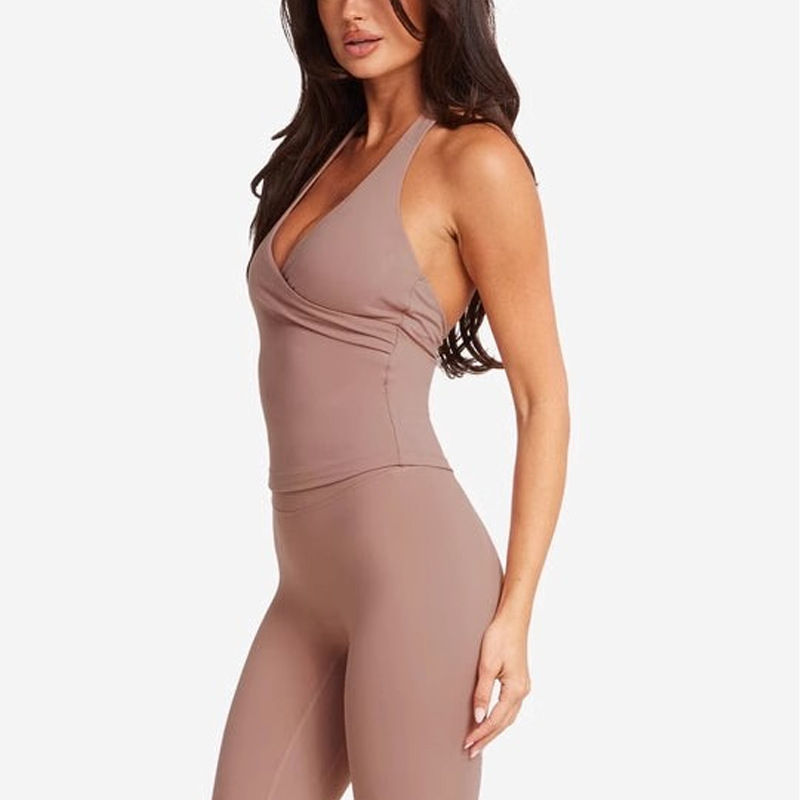 เสื้อกล้ามออกกำลังกายแบบใหม่ ทรงวี ผ้าไนลอนผสมสแปนเด็กซ์ เสริมฟองน้ำ ระบายอากาศได้ดี แบบผูกคอ สำหรับเล่นกีฬา โยคะ และฟิตเนส