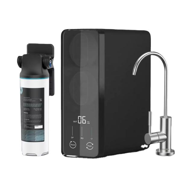 600G TDS ไหลตรงแบบไร้ถังแสดงระบบน้ําแบบรีเวอร์สออสโมซิสพร้อมตัวกรองอัลคาไลน์