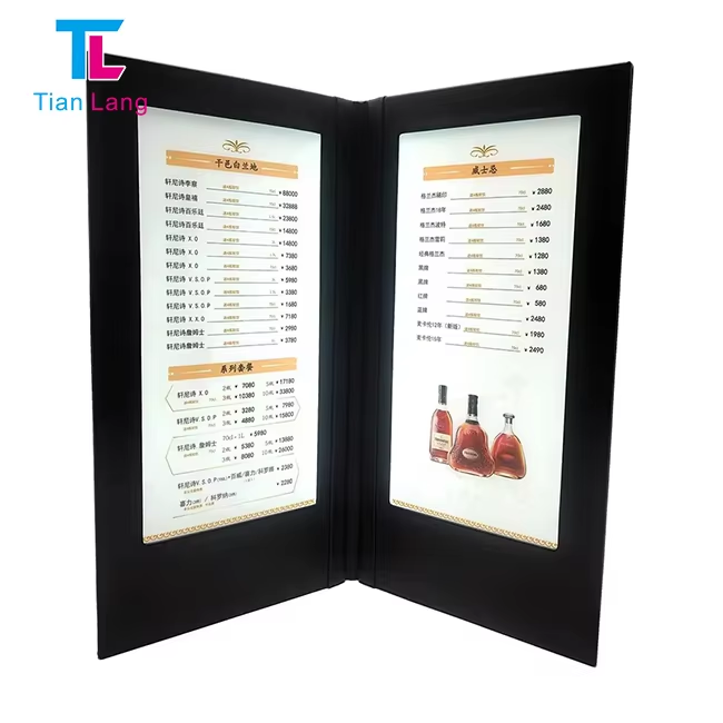 Tanlang ที่ใส่หนังสือ LED แบบมีไฟด้านหลังแสดงเมนูหนังเรืองแสงสำหรับร้านอาหารบาร์ไนท์คลับ