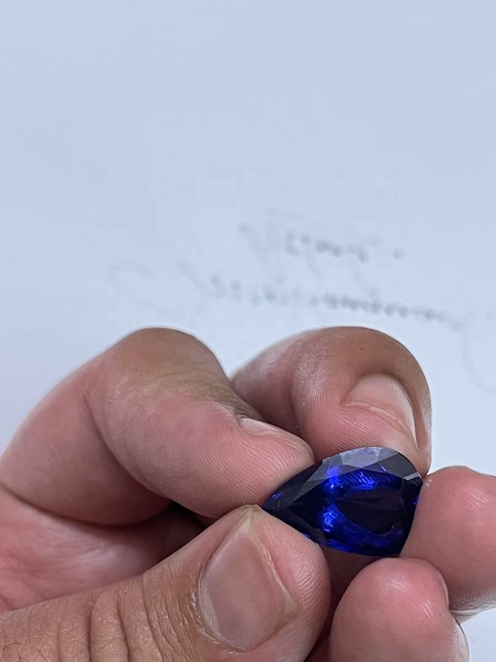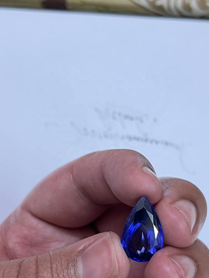 หินอัญมณีแทนซาเนตทรงลูกแพร์สีสวยและคุณภาพสูงสุดทำพลอยหลวม12.10 Cts เจียระไนโดย Sadiya International