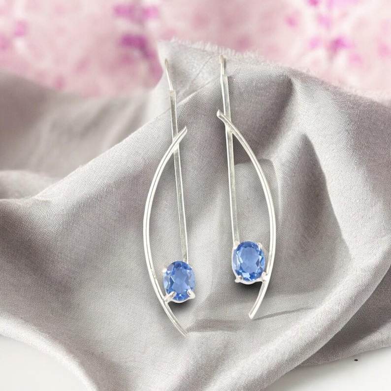 ต่างหูแทนซาไนต์ประดับอัญมณีระยิบระยับ