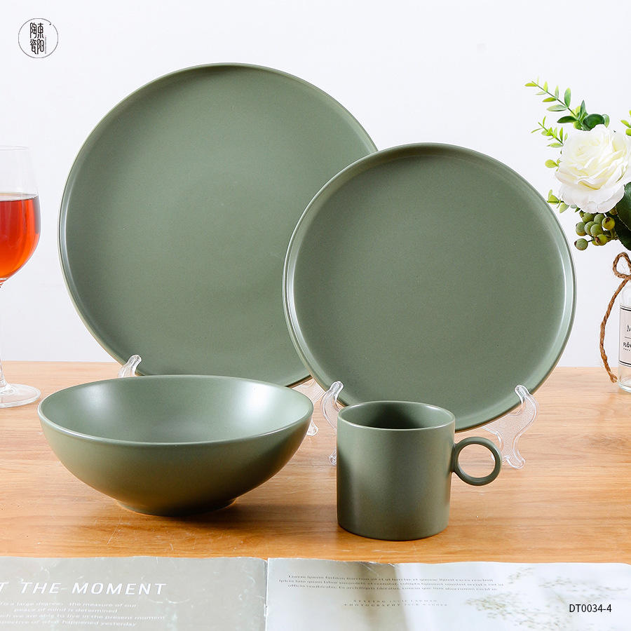 ชุดอาหารเซรามิก TaoYuan จาน ชาม ถ้วย สีเขียวล้วน รุ่น DT0034 4 ชิ้น เหมาะสำหรับใช้ในบ้านและโรงแรม