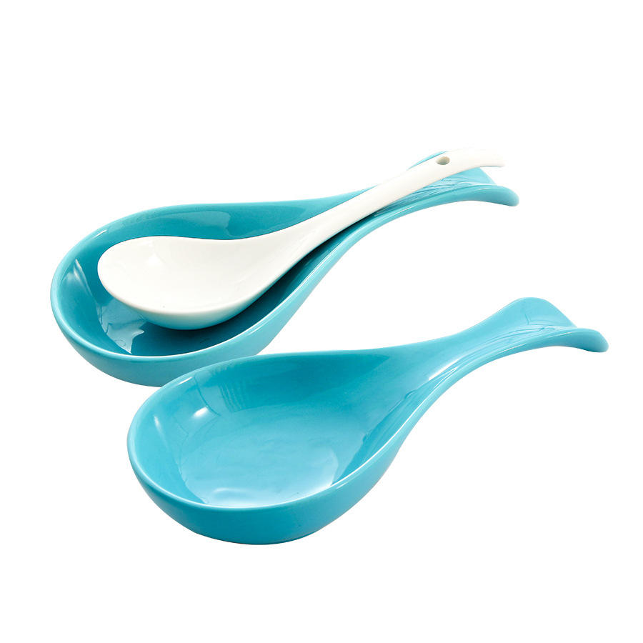 TaoYuan Ceramic Spoon Rest Blue Glazed Dishwasher Safe Kitchen Utensil Holder DD0917