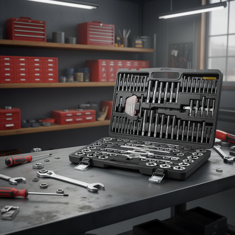 ชุดเครื่องมือต๊าปเกลียว 116 ชิ้น เมตริก SAE เหล็กกล้าคาร์บอนเคลือบ PVD เกลียวซ้าย สำหรับงานตัดเกลียวและงานกลึง