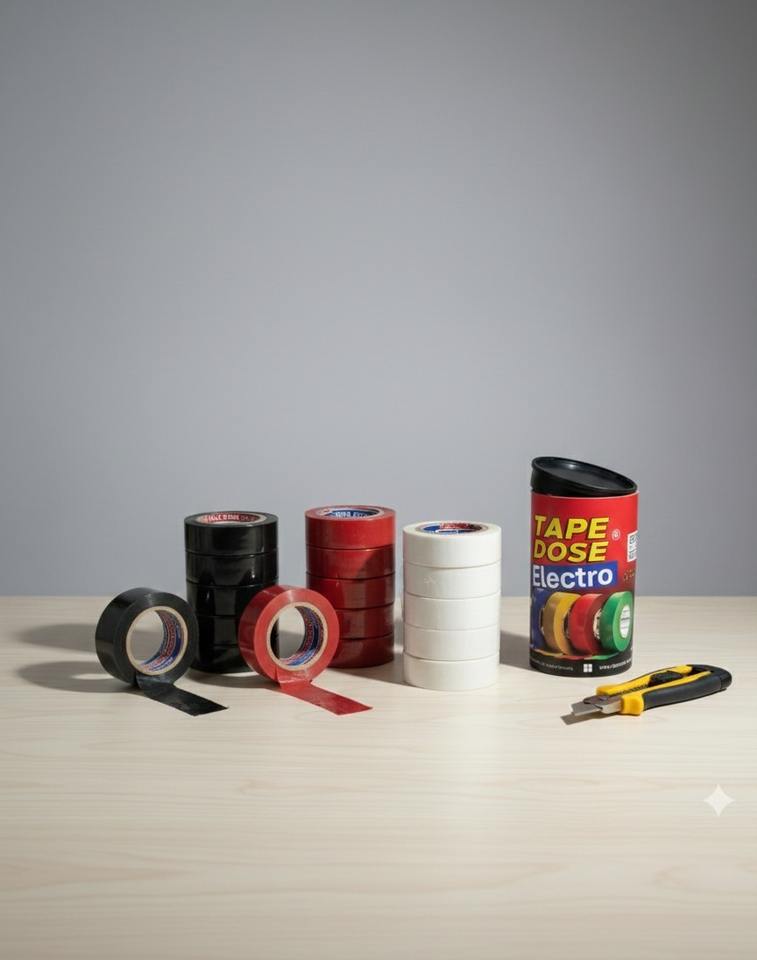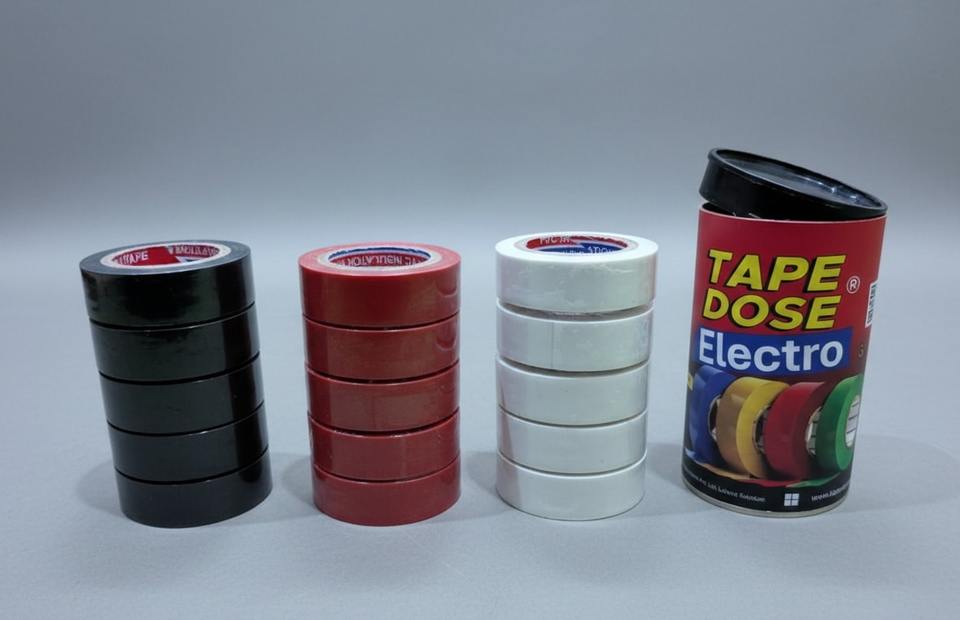 เทปโดเซส อิเล็กโทร – เทปฉนวนไฟฟ้าพรีเมียมสีแดง กล่องทรงกระบอกแต่ละกล่องบรรจุเทปคุณภาพสูง 5 ม้วน