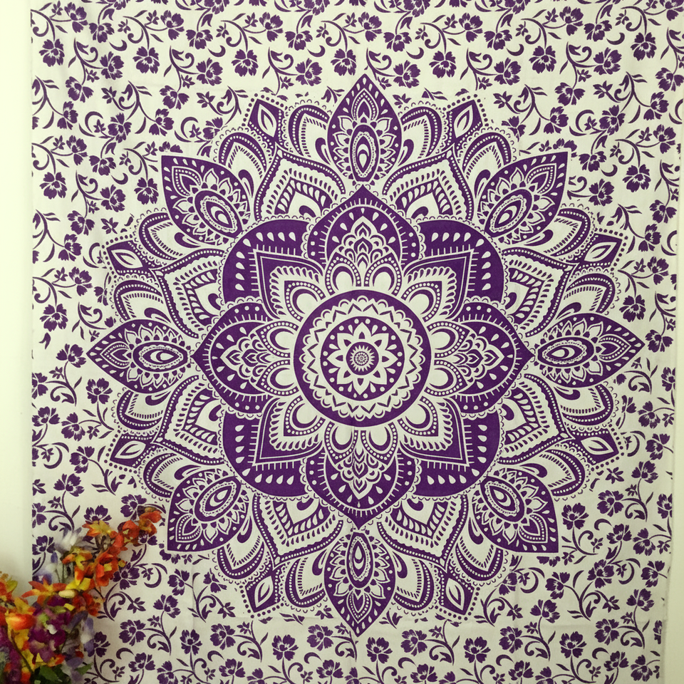 ผ้าแขวนผนังลายดอกไม้สีม่วงพิมพ์ลายแมนดาลาสวยงาม ขนาดทวินไซส์ สำหรับตกแต่งบ้าน ทำด้วยผ้าฝ้าย ผลิตด้วยมือโดยผู้ผลิตชาวอินเดีย