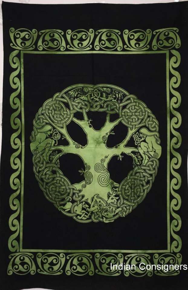 ผ้าปูผนังขนาดเล็ก โปสเตอร์แขวนผนัง ลายต้นไม้เซลติก ผ้าฝ้ายสไตล์อินเดีย
