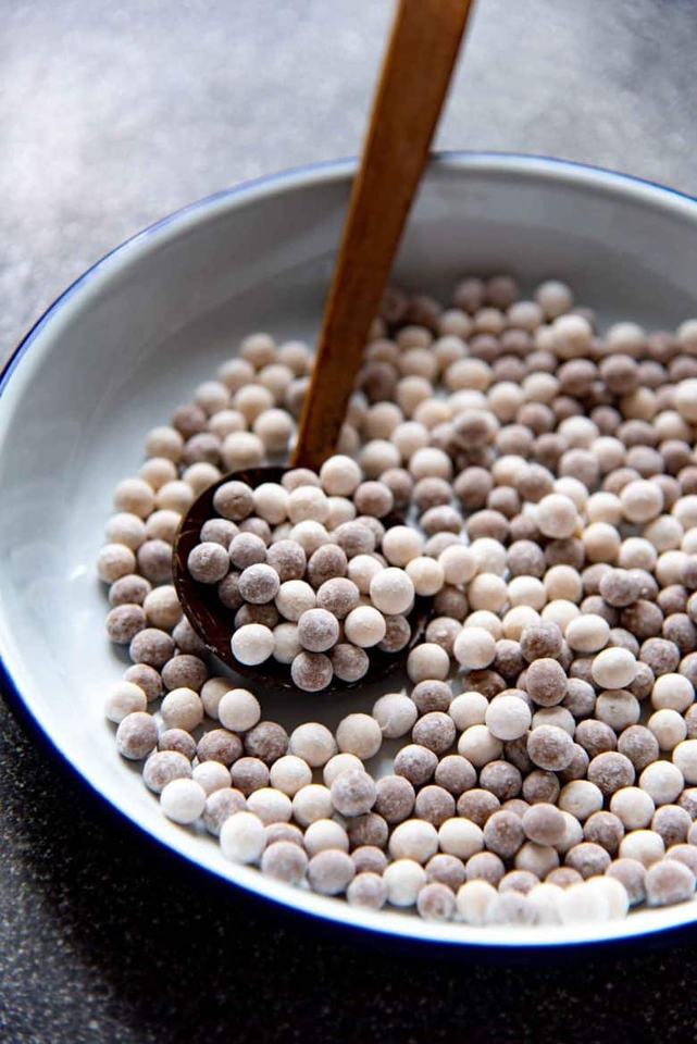 ไข่มุกสำหรับชานมไข่มุก เนื้อนุ่มหนึบ รสชาติน้ำตาลทรายแดง ทำจากมันสำปะหลังธรรมชาติ ได้รับการรับรองวีแกน - 99 โกลด์ ดาต้า