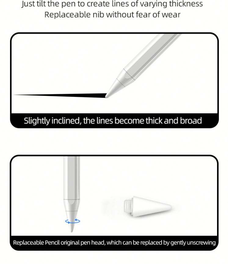 ดึงดูดด้วยแม่เหล็ก, ปาล์มปฏิเสธ, เทคโนโลยีการตรวจจับที่ใช้งานอยู่, ปลายปากกาเปลี่ยนได้, การตรวจจับมุมเอียงคุณสมบัติ