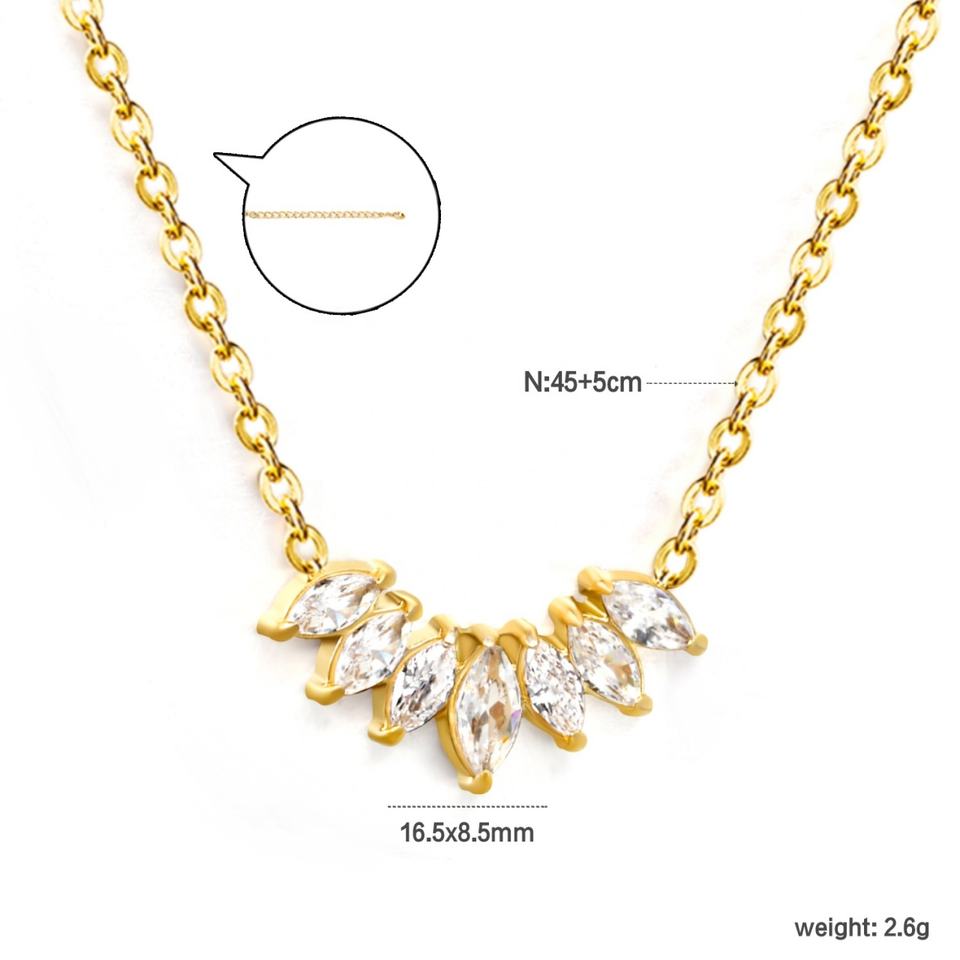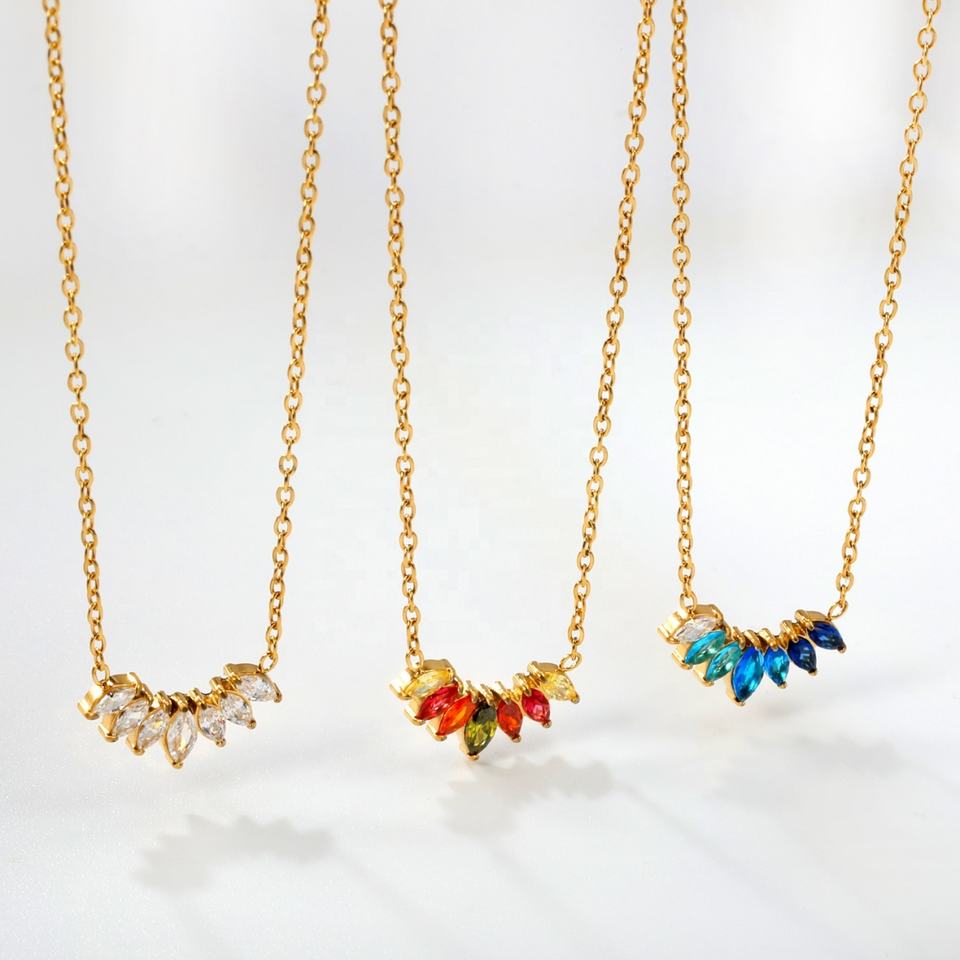 สร้อยคอจี้รูปใบไม้ประดับเพชรซิคอนหลากสี ชุบทอง 18K สแตนเลสสตีล กันน้ำ ไม่หมอง สำหรับผู้หญิง